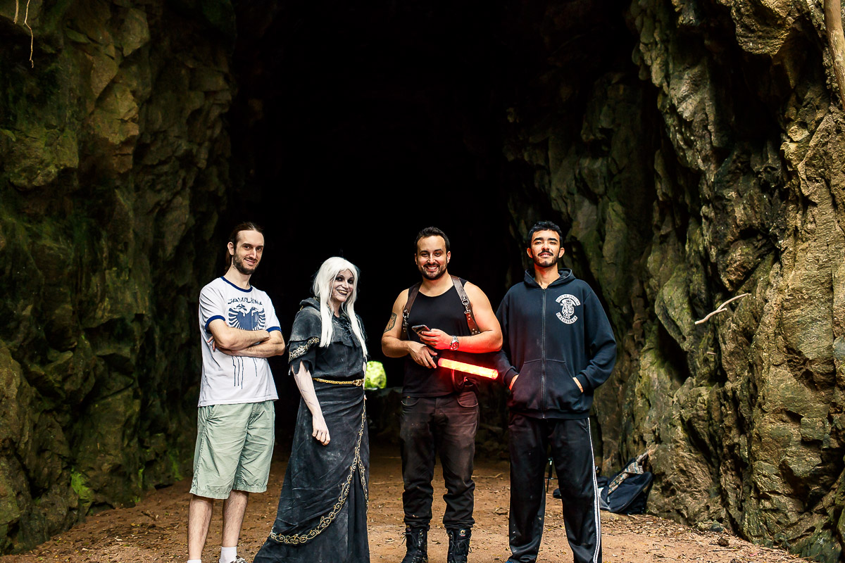 Depois de ajustarmos ideias, os materiais e a locação, partirmos para as trilhas. E cara, o clima tava perfeito, muito a cara do personagem.